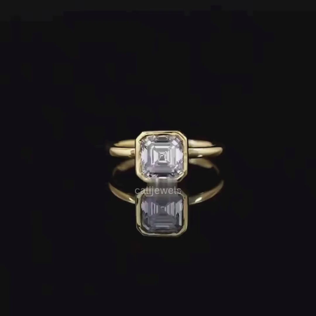 Asscher Cut Lab Diamond Bezel Set Wedding Ring, 14K Solid Gold Solitaire Ring, Engagement Ring For Her, Anniversary Ring Gift For Love, Eco Friendly Diamond Bridesmaid Ring, 0.50 To 3.00 CT Diamond Ring, Lab Diamond Bezel Ring Collection