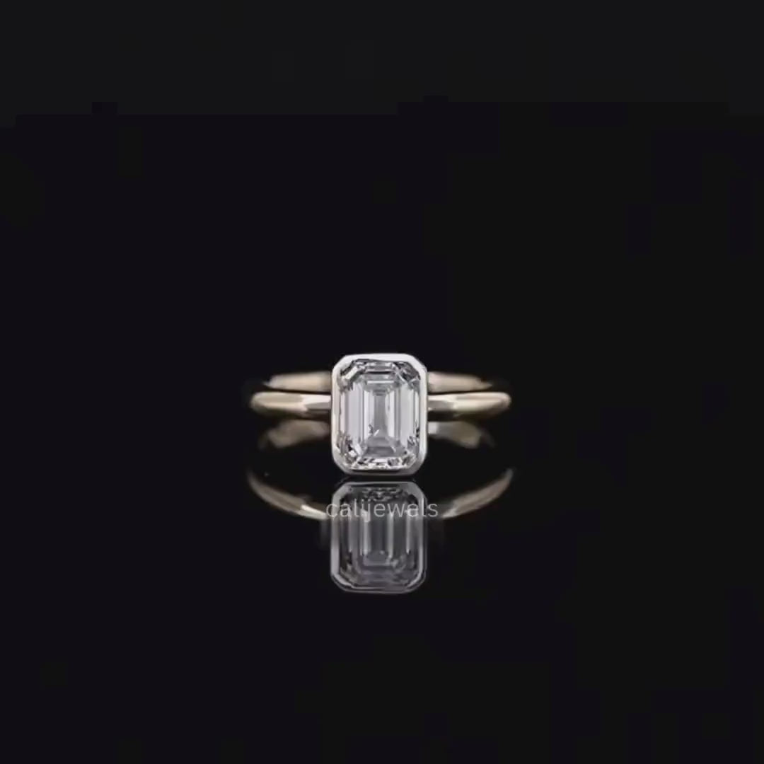 Emerald Cut Lab Grown Diamond Solitaire Ring, Bezel Set Diamond Wedding Ring, Conflict Free Diamond Anniversary Ring, 14K Solid Gold Ring, Eco Friendly Diamond Engagement Ring, Hand Made Diamond Proposal Ring, 0.50 To 3.00 CT Diamond Ring