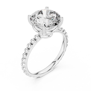 Radiant Beaded Solitaire 3-Ct Round Diamond Ring in 14-KT White Gold - White / US 6