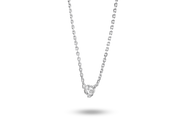 Set in sterling silver, the three prong setting holds a 0.15 carat stone, graded at SI clarity, Faint color and Very Good cut.