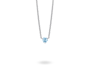 Bringing a fresh blue lab-grown diamond perspective to a traditional solitaire stone pendant. Set in 14k white gold, the three claws allow light to reflect in from all angles giving effortless chic style with added sparkle. Pair with our matching blue studs for a complete look.