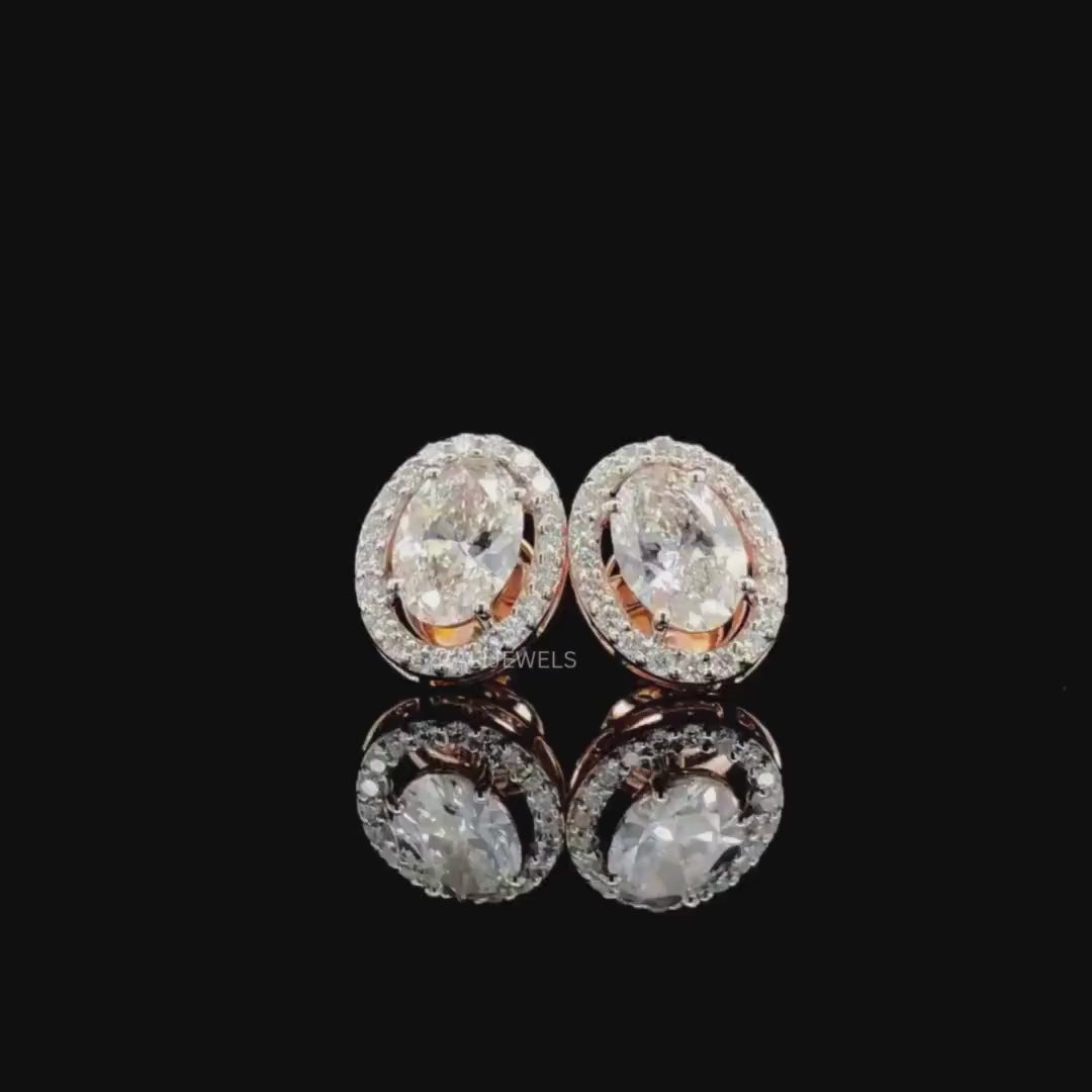 Capture the essence of timeless elegance with these breath-taking lab-grown diamond stud earrings. Featuring a brilliant oval-cut centre stone encircled by a sparkling halo of smaller accent diamonds, these studs offer maximum fire and sparkle. They are the perfect statement piece for everyday luxury or a special occasion.