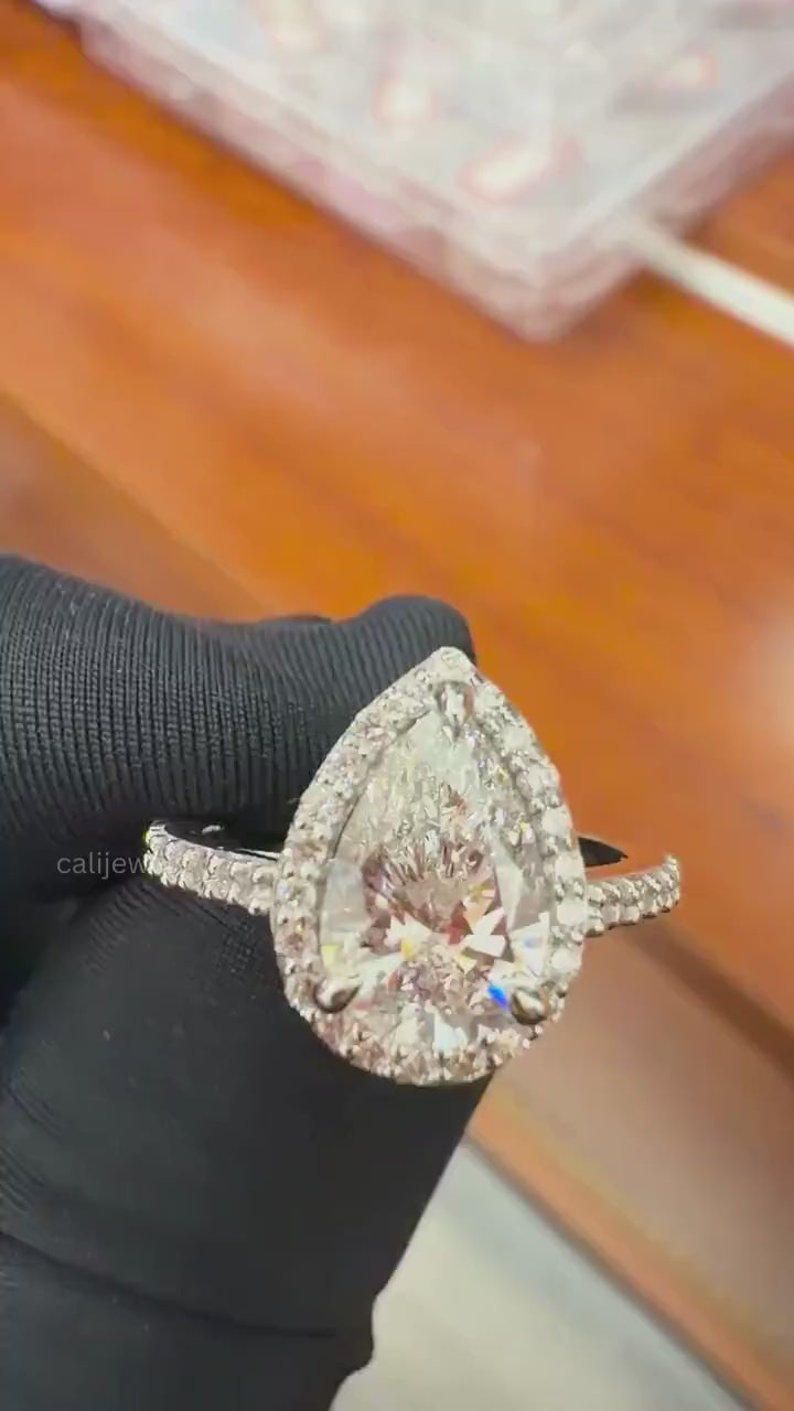 2.00 Carat Pear Cut Conflict Free Diamond Halo Accent Ring, Lab Grown Diamond Prong Set Wedding Ring, 14K White Gold Diamond Ring For Love, Mothers Day Special Ring, Ring For Wedding Gift, Birthday Ring Gift For Wife, CVD Diamond Ring Collection