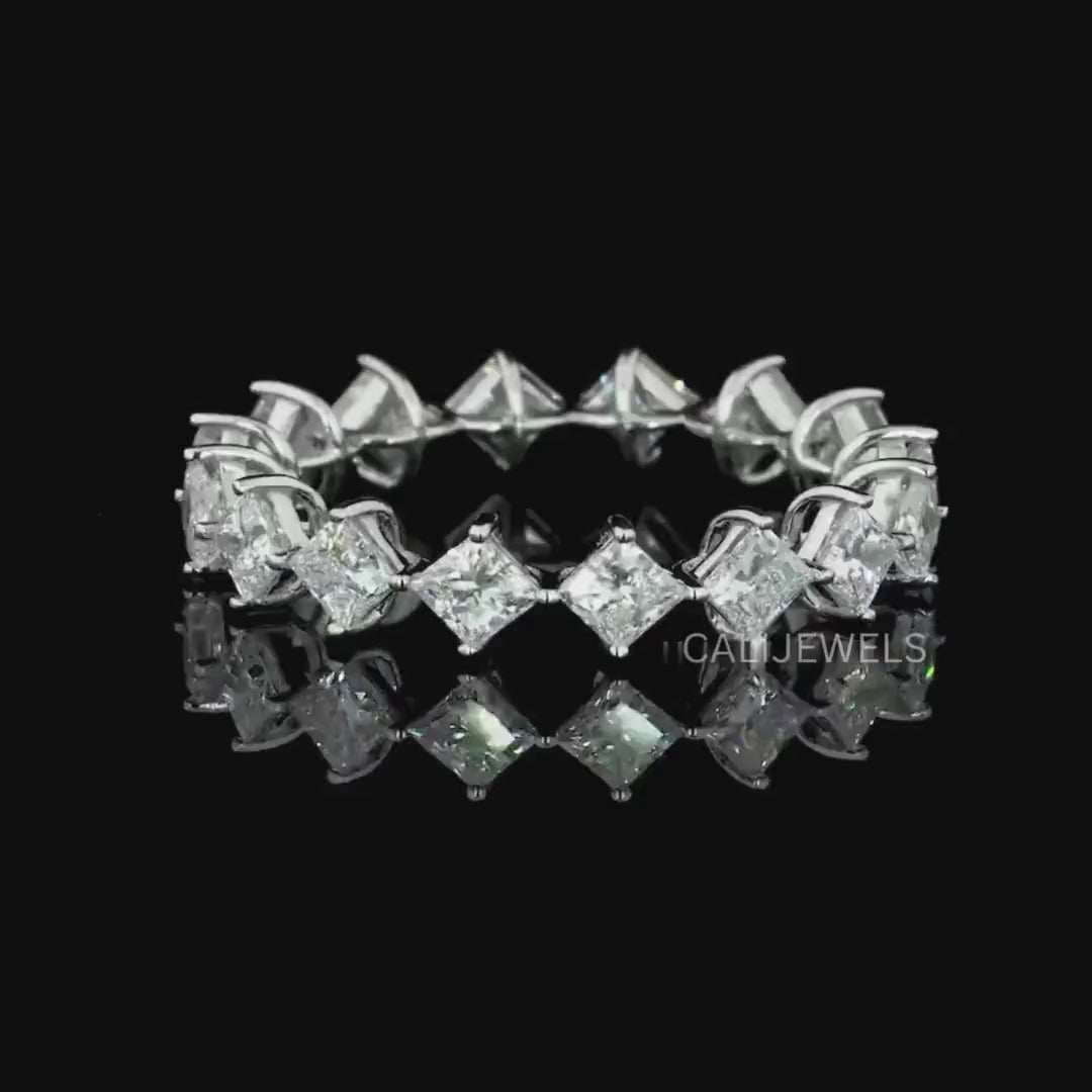 Elevate your hand with this extraordinary princess-cut lab diamond eternity band. Designed for the modern bride or jewelry lover who values unique design, this ring features a stunning geometric "crown" silhouette. The brilliant princess-cut diamonds are set point-to-point, creating an endless circle of sparkle that is both elegant and eye-catching.