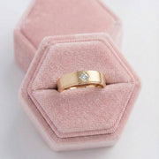 This bold and sophisticated Wide Band Ring is the perfect blend of modern style and timeless luxury. Featuring a brilliant, ethically-sourced Princess Cut Lab Grown Diamond flush-set into a wide, substantial band of solid gold, it‘s designed for the man who appreciates minimalist design and exceptional quality. The beautiful gold a rich, contemporary texture that resists fingerprints and elevates the overall look.