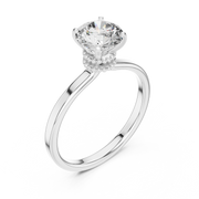 14-KT Elegant Solitaire 1-Ct Round Diamond Ring with Beaded Basket Setting - White / US 6