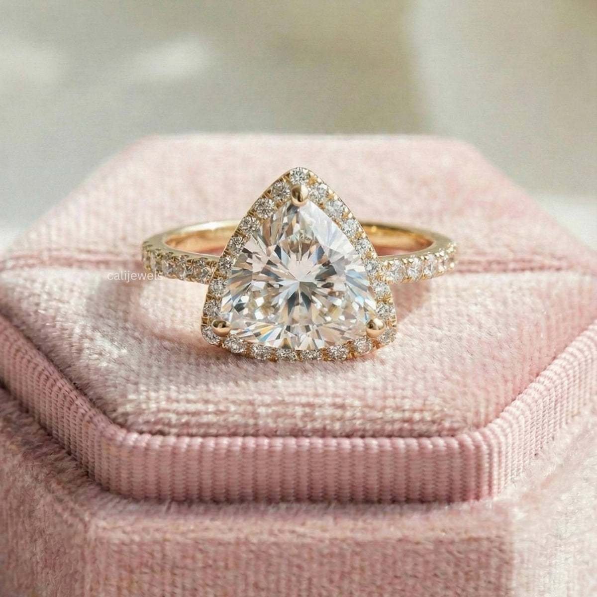 3.00Ct Trillion Cut Diamond Ring, Lab Grown Diamond Halo Engagement Ring, Chunky Wedding Ring, Lab Grown Diamond Halo Engagement Ring, Halo diamond Ring, Pave Wedding Ring, Cathedral Set Ring, White/Yellow/Rose Gold Ring, Trillion Cut Ring, Chunky Ring For Her, Conflict Free Diamond Ring, Man Made Diamond Ring, Anniversary Gift For Wife, Diamond Ring for Women, Pave Ring, Unquie Proposal Ring For Love, Valentine Gift Ring For Her