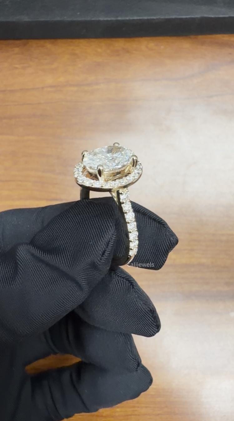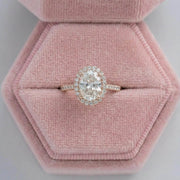 Capture the essence of timeless elegance with this breath-taking Oval Cut Lab-Grown Diamond Engagement Ring. Designed to dazzle, this ring features a brilliant oval centre stone perfectly encircled by a sparkling halo, set on a delicate pave diamond band. It‘s the ultimate symbol of your everlasting love. The classic halo setting amplifies the centre stone‘s fire and brilliance, while the glistening pave diamonds extend down the band for a truly luxurious look. Crafted from solid 14k gold, this ring is a perfect blend of modern sophistication and timeless romance.